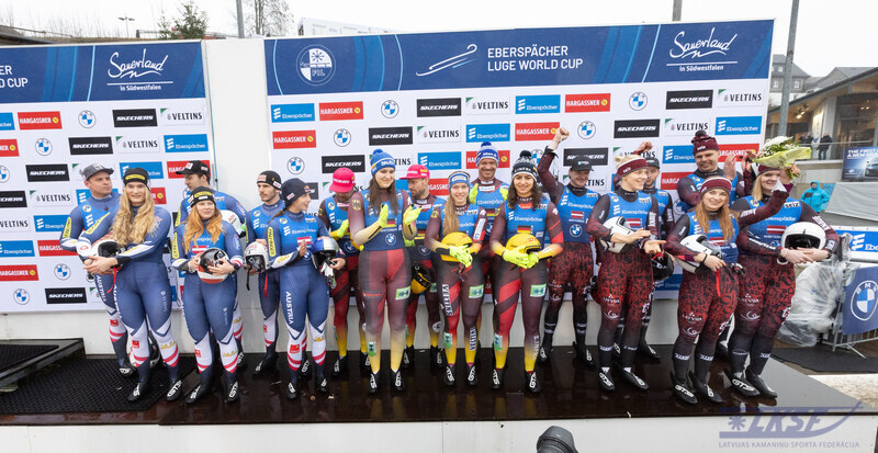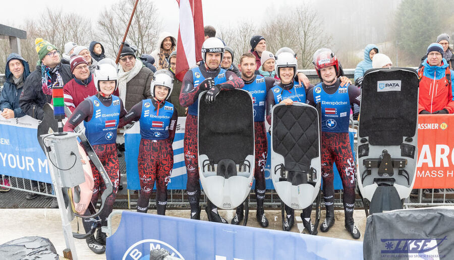 Latvijas kamaniņu sporta izlase svētdien noslēdza Pasaules kausa sezonas pirmo posmu Vinterbergā ar spēcīgu un emocionāli piesātinātu startu komandu stafetē, izcīnot trešo vietu un kāpjot uz goda pjedestāla septiņu komandu konkurencē.
